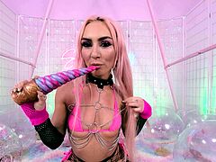 Blonde With Natural Big Boobs Loves Putting A Toy In Her